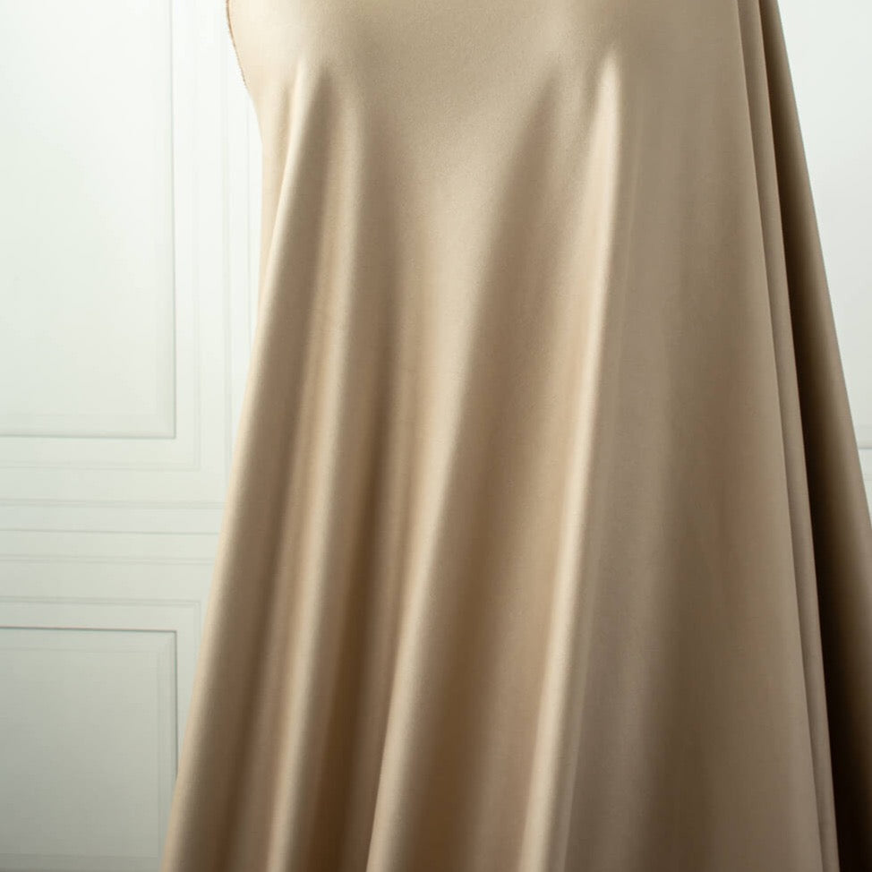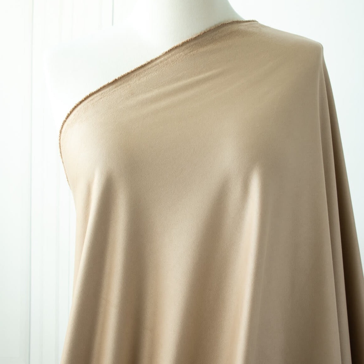 Faux Suede Knit fabric in a soft tan color, the perfect combination of luxury and comfort. Experience the soft hand and smooth texture of this stylish yet cozy fabric by the yard. Create pieces with sophistication and a bit of edgy fun! Ready to take your projects up a notch?