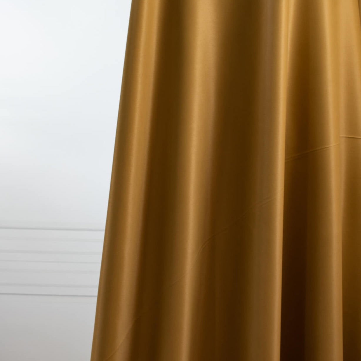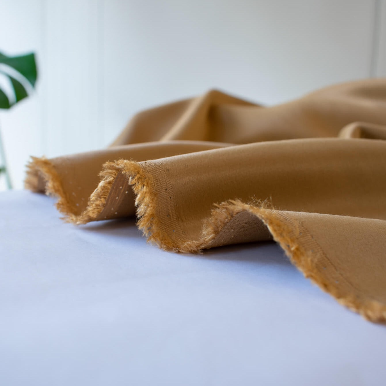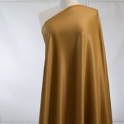 Enjoy a bit of 'Old Hollywood Glamour' in this dark gold stretch crepe back satin fabric by the yard from a LA Designer. This satin is soft with a smooth hand and gorgeous sheen on the face side and a textured hand on the crepe back.